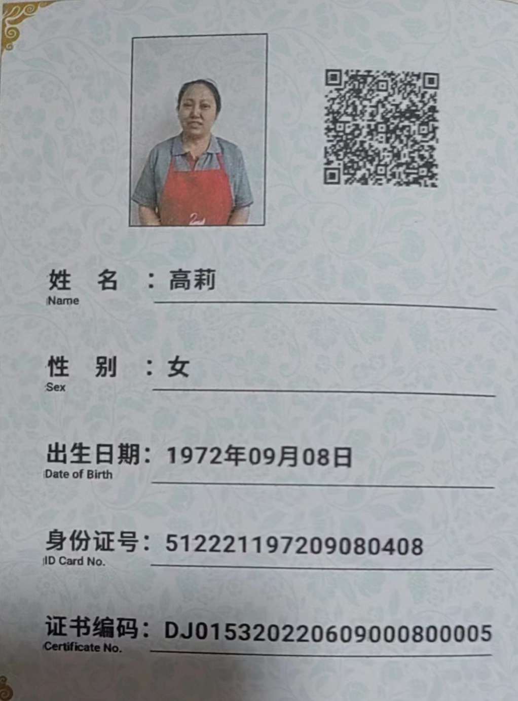 員工姓名:高莉